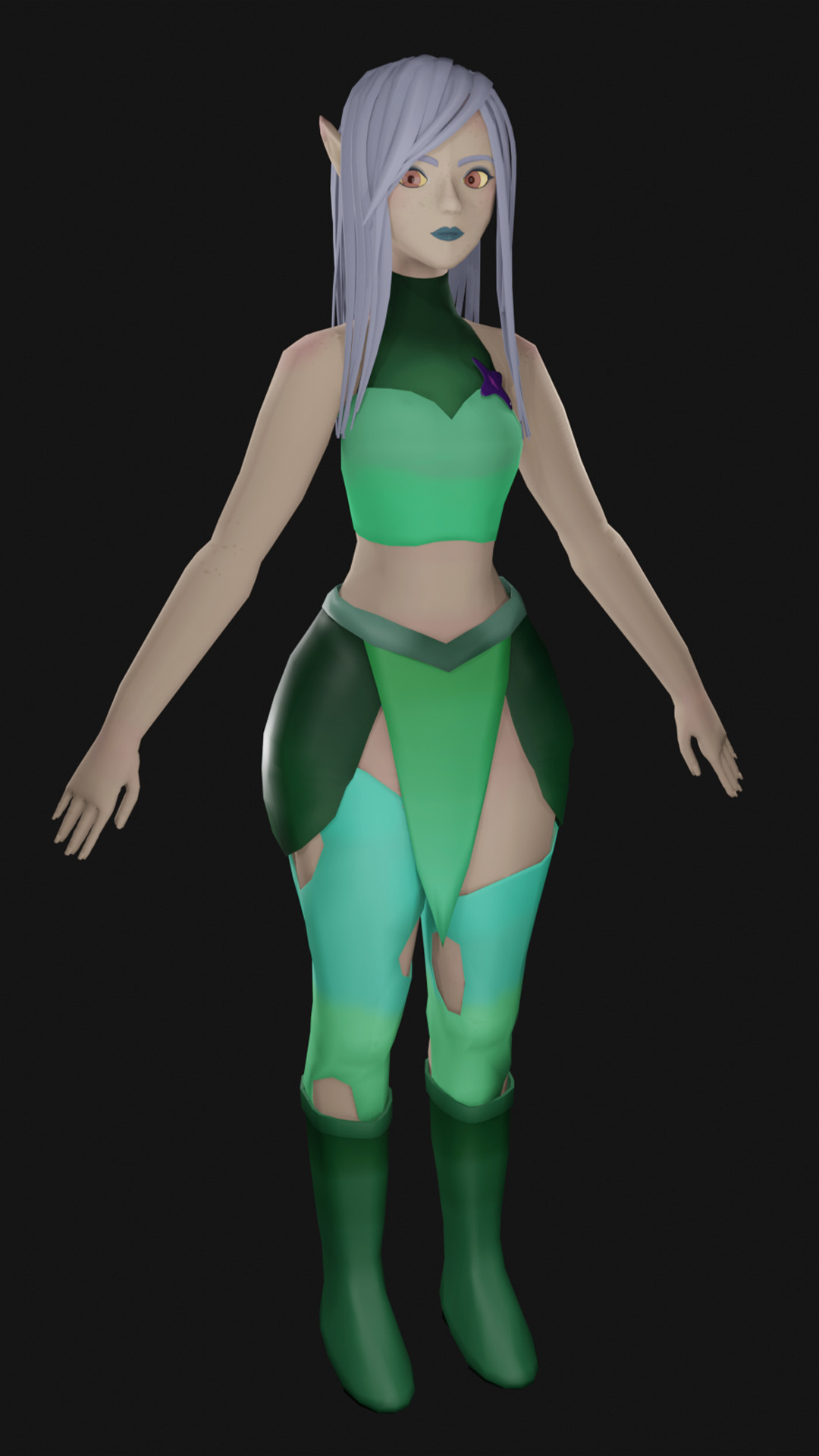 Lythaei comes from a personal worldbuilding project I started years ago. For this assignment, I chose not to reuse her old drawings but to redesign her from scratch and explore who she could become visually. I wanted her to feel friendly and magical without falling into the typical dark assassin look that female characters often get.