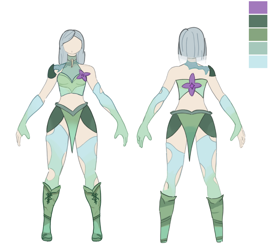 In her story, she is the keeper of Atriahlensia, the Tree of Life. I tried to let that heritage show subtly in her appearance through her shapes, colours and overall presence.